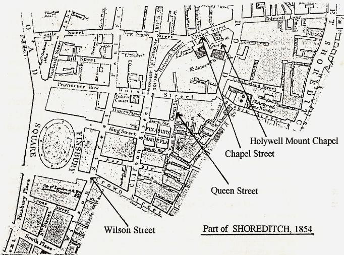 Holywell, Flint, which I have seen stated in more than one publication, but in Chapel Street, Holywell, Shoreditch,