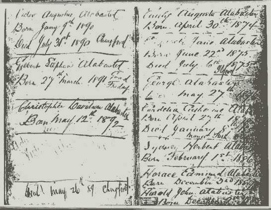 following year, 8th April 1884, when another daughter, Florence Gertrude Alabaster was born her birth was not